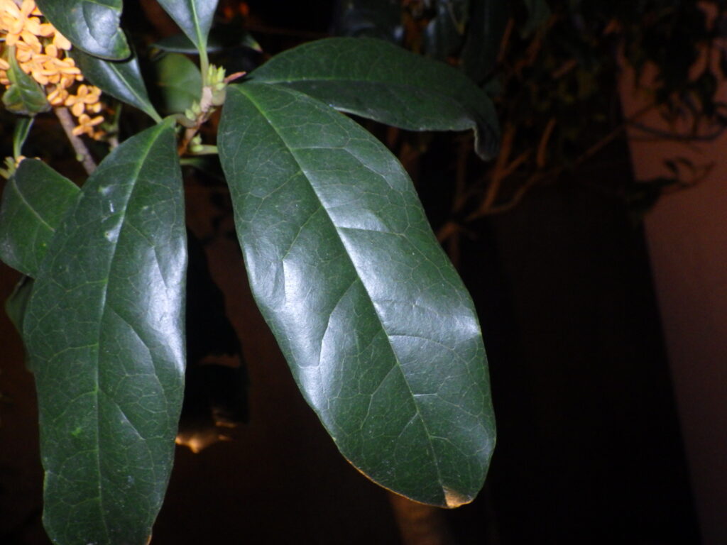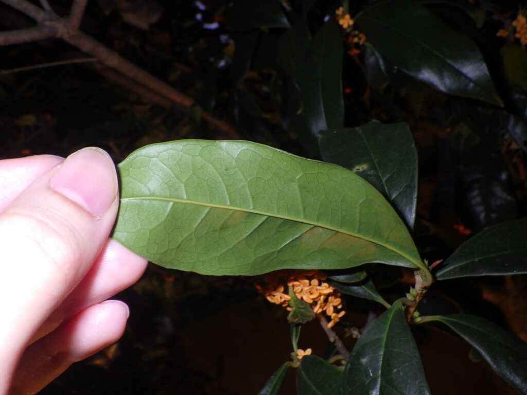 キンモクセイ(金木犀) Osmanthus fragrans var. aurantiacus f. aurantiacus は中国原産と言われる雌雄異株(=雄の木と雌の木がある)の常緑小高木です(茂木ら,2003)。東北から九州では植栽として非常に身近な植物と言えるでしょう。モクセイ科。