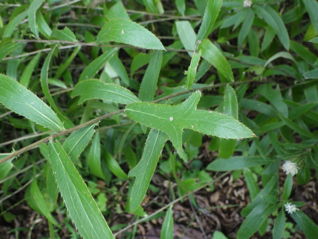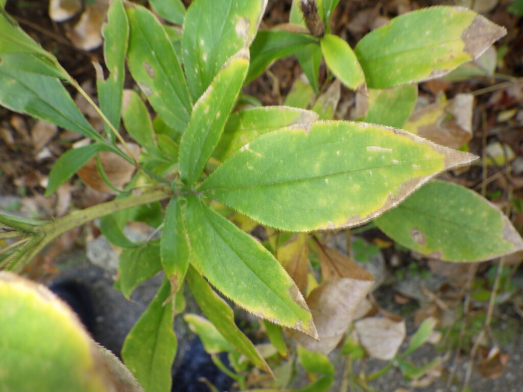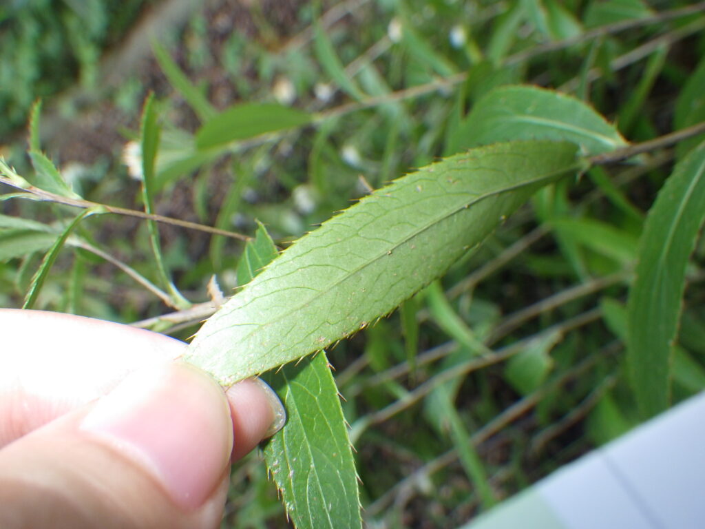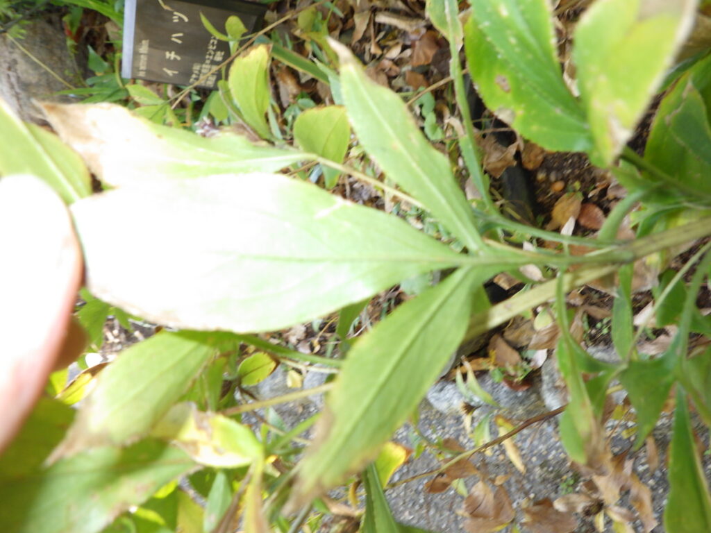 形態的にはオケラでは葉が幅広で、鋸歯が密で短いのに対して、ホソバオケラでは葉が細長く、鋸歯がまばらで長いという違いがあります。これは和名の通りです。