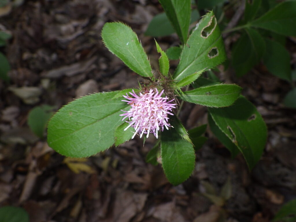 オオバナオケラ Atractylodes macrocephala はホソバオケラに似ますが、花冠が紫がかった赤色で約1.7cmです(ホソバオケラは花冠は白または黄色で1.3cmまで)。根茎は白朮の1種です。
